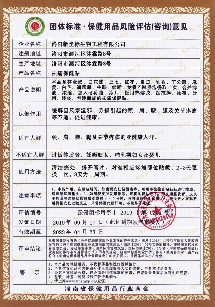 祛痛保健貼評估編號第0201號